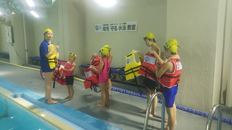 この教室では、ライフジャケットを用いた水辺での安全な過ごし方など、自分自身が助かる方法といった「自助」についての学び、助かった自分自身が友だちや仲間などまわりの人たちに目を向け、助けられるようになるために、心肺蘇生や応急手当など、「共助」についても学びます。