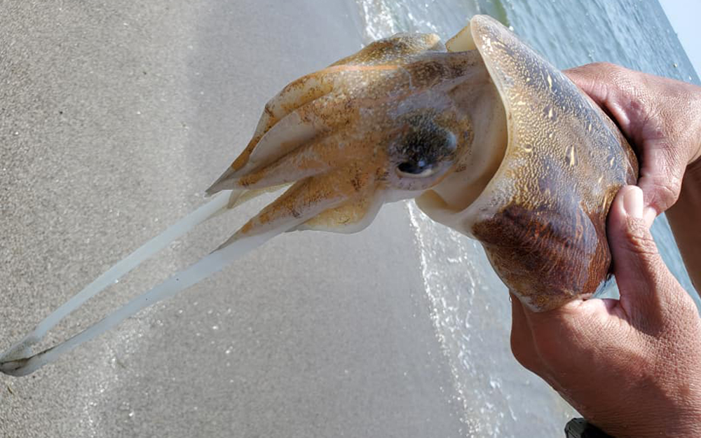 夏のある日、筆者が活動する海岸で、子供たちの前に、打ち上がっていたカミナリイカについてお話ししました。