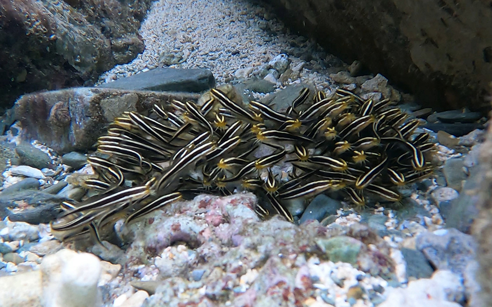 ここに記載した以外にも、この魚の生態について調べてみてください。幼魚の時は『ゴンズイ玉』とよばれる群れを作って捕食者から身を守っています。ホルモンを出し合って群れを作っているのです。