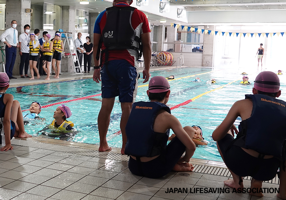 7月1日、日本ライフセービング協会(JLA)が「学校における水難事故防止対策の強化」をテーマに、指定校と教育連携を実践研究する一環の授業で、成城学園(東京都世田谷区)で実施されたライフジャケットを利用した水泳授業を室伏広治スポーツ庁長官が視察されました。
